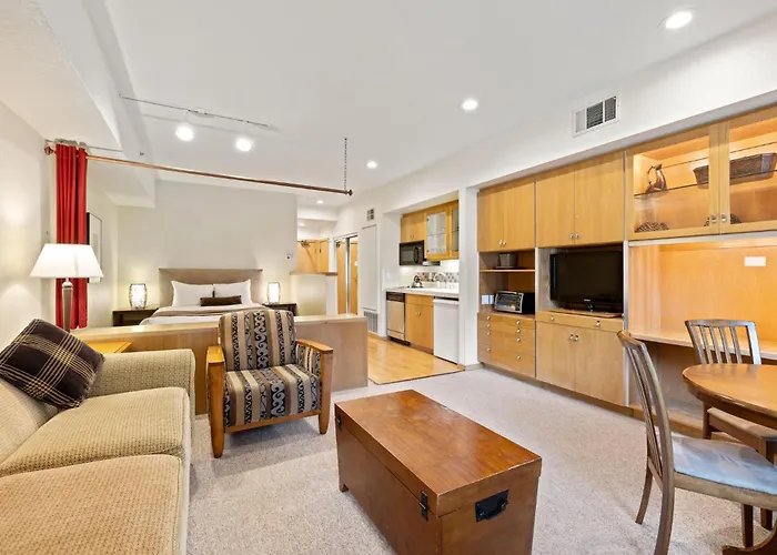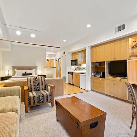 Palisades Tahoe Lodge Rentals Studio #113 Olympic Valley est situé à 14 minutes à pied de Squaw One Express et à moins de 2 km de Squaw Creek Golf Course. Accueillant les clients avec un jacuzzi, un bain chaud et un sauna, l'appartement se trouve près de la Remontée mécanique Exhibition.